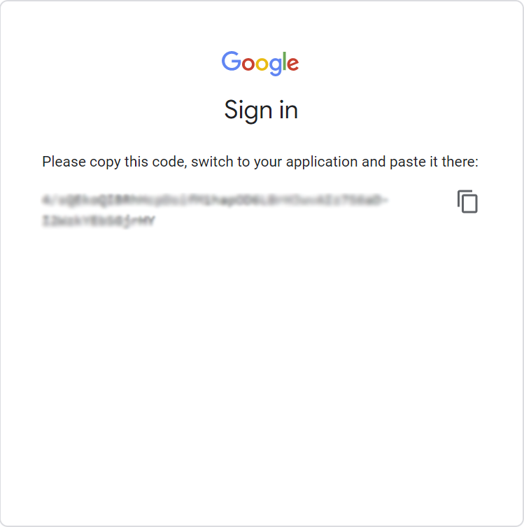 c. A new page will open in your web browser giving you an authentication code.