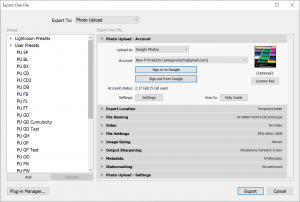 Uploading photos – Export User Presets