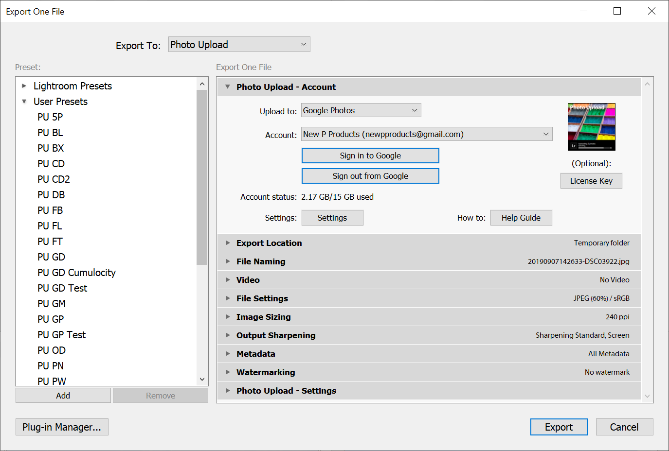 Lightroom plug-ins