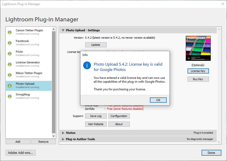 You don’t have to purchase a license key to use Photo Upload, but the free version has certain restrictions, such as not being able to choose the destination album.