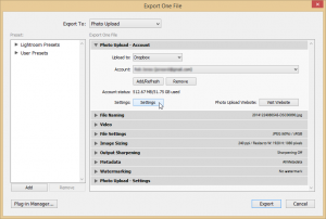 Uploading photos – Export User Presets