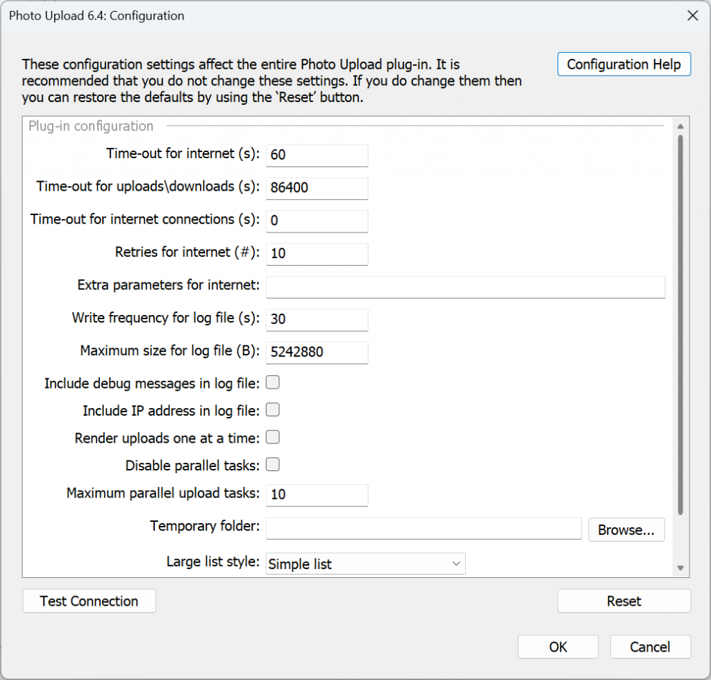 When creating or editing a collection or collection set within a publish service the following settings may be available depending on the upload service selected.